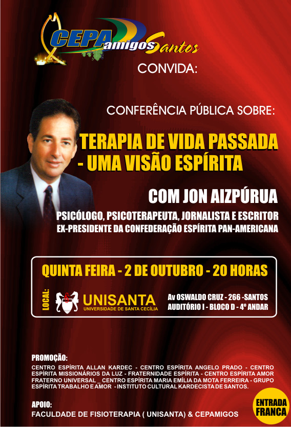 Respeitado pela divulgação de um espiritismo livre-pensador, progressista, dinâmico e humanista, o venezuelano Jon Aizpúrua vem a convite de entidades ligadas à Confederação Espírita Pan-Americana, da qual já foi presidente, para desenvolver tema que há muito desperta interesse do homem na incessante busca por auto-conhecimento e pelo sentido de sua existência.