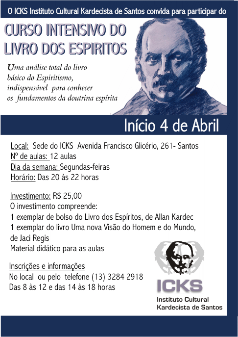 de 2002 (sábado) das 14,30 às 17,45 horas - Local: sede do ICKS - Instituto Cultural Kardecista de Santos, à Av. Francisco Glicério, 261 - Santos - SP.